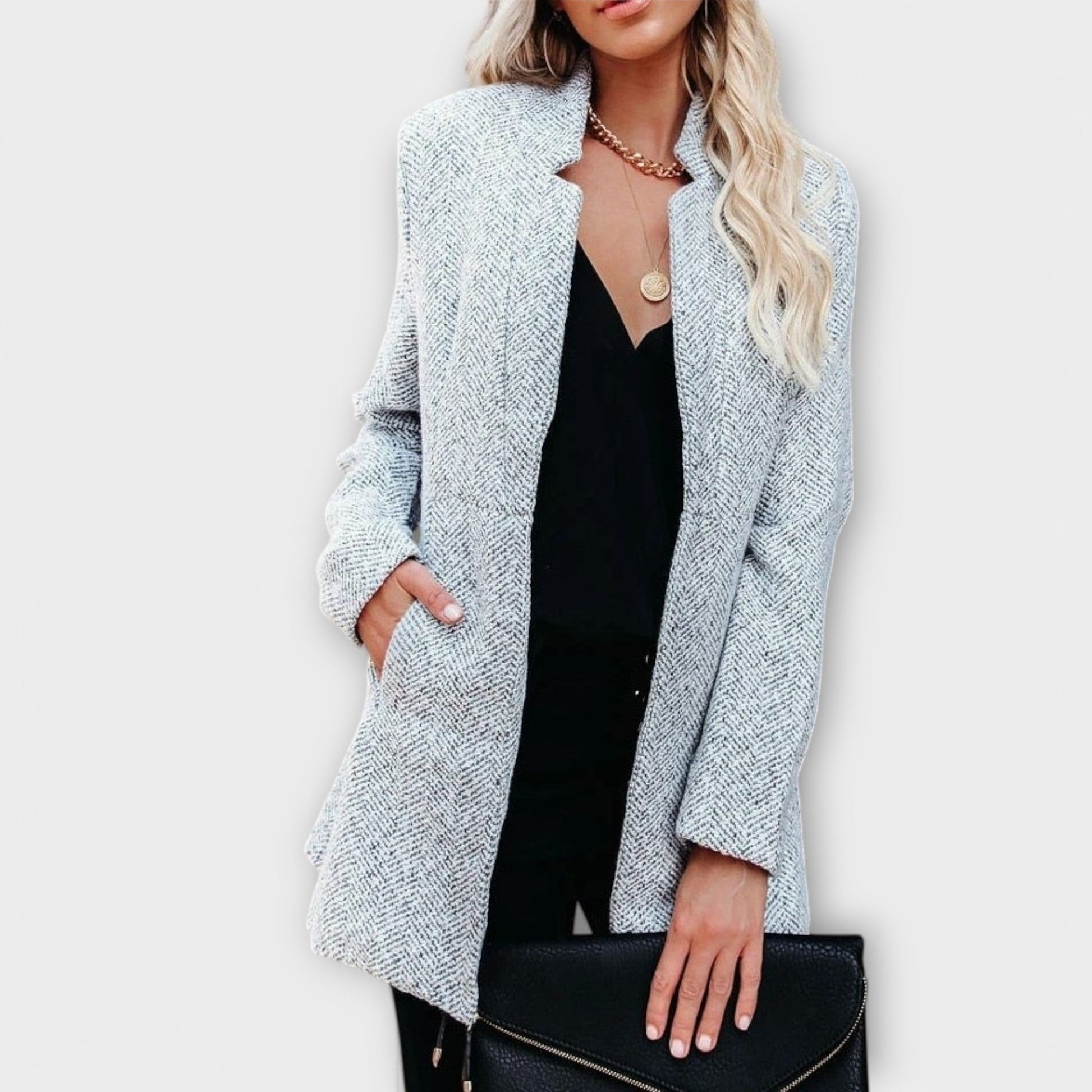 - Design Elegante: O tecido tweed e o corte clássico fazem deste casaco uma peça indispensável tanto para o dia-a-dia como para ocasiões especiais.