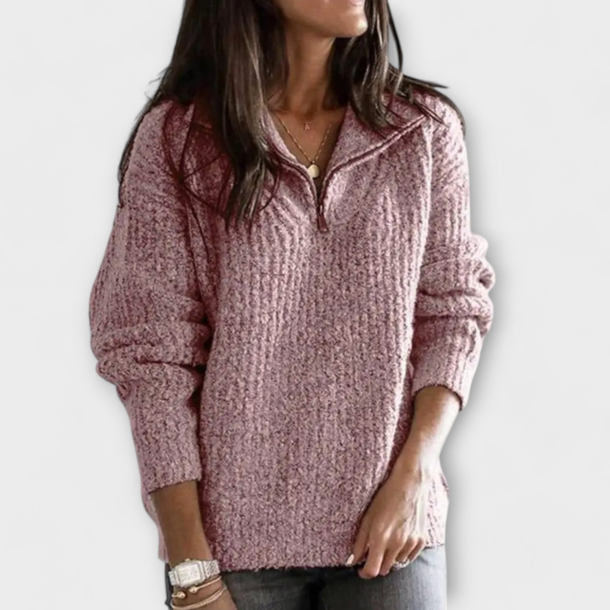 Mantenha-se aquecida e confortável neste suéter de inverno de corte relaxado, com fecho de meio zíper, que dá um toque moderno e prático. As mangas longas e o material suave proporcionam calor e conforto, tornando-o perfeito para o uso diário ou aventuras ao ar livre no inverno.